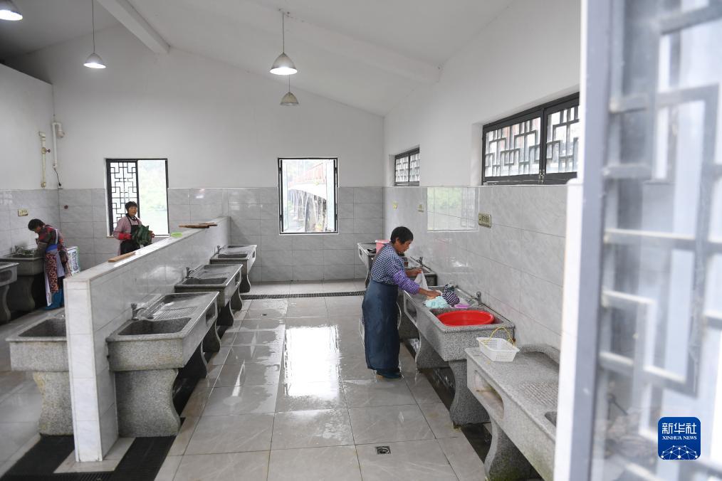 11月8日,村民在村里的洗衣房?jì)蠕较?。金星村?zhuān)門(mén)修建了集中洗衣房,既便利村民洗衣,也杜絕了臨河浣洗造成的水質(zhì)污染。