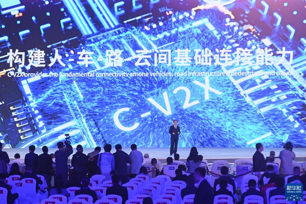 11月8日拍攝的C-V2X車(chē)聯(lián)網(wǎng)通信關(guān)鍵技術(shù)研究及應用發(fā)布現場(chǎng)。
