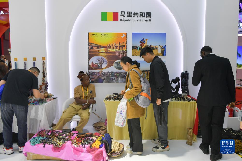 11月8日,觀(guān)眾在第六屆進(jìn)博會(huì )國家展馬里共和國館了解傳統手工藝品。