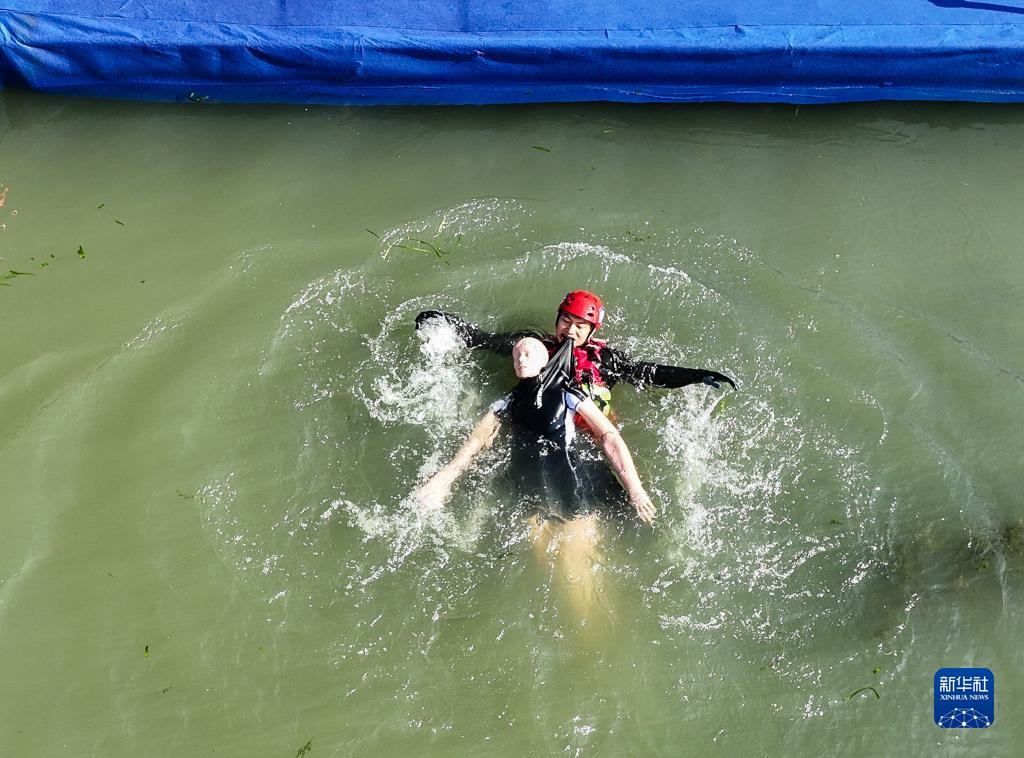11月8日,消防員在南京玄武湖參加水域救援比賽(無(wú)人機照片)。