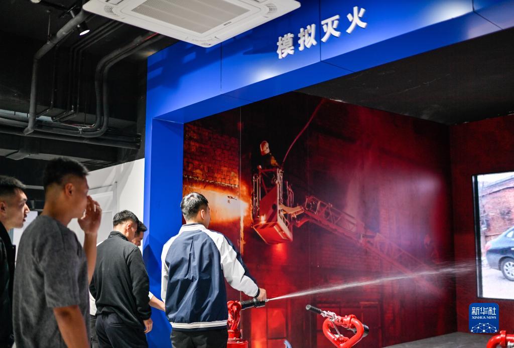11月9日,觀(guān)眾在長(cháng)春市消防科普教育基地體驗模擬滅火器。