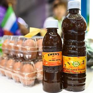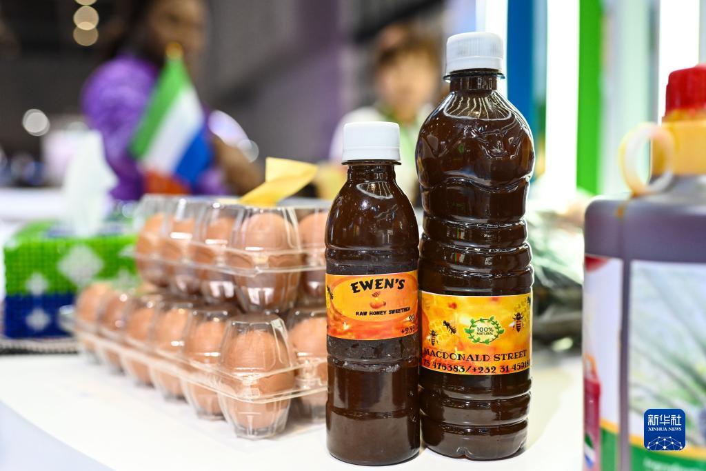 11月8日,在第六屆進(jìn)博會(huì )上拍攝的塞拉利昂蜂蜜產(chǎn)品。