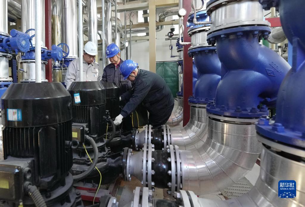 11月9日,國網(wǎng)辛集市供電公司工人檢修供熱電力設備。