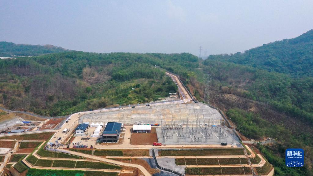 這是11月9日在印度尼西亞西爪哇省芝拉塔水庫拍攝的芝拉塔漂浮光伏項目升壓站(無(wú)人機照片)。