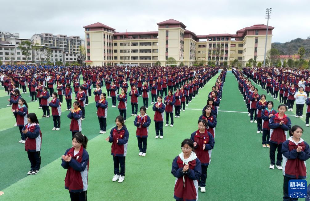 11月9日,黃平民族中學(xué)的學(xué)生在大課間做活動(dòng)。