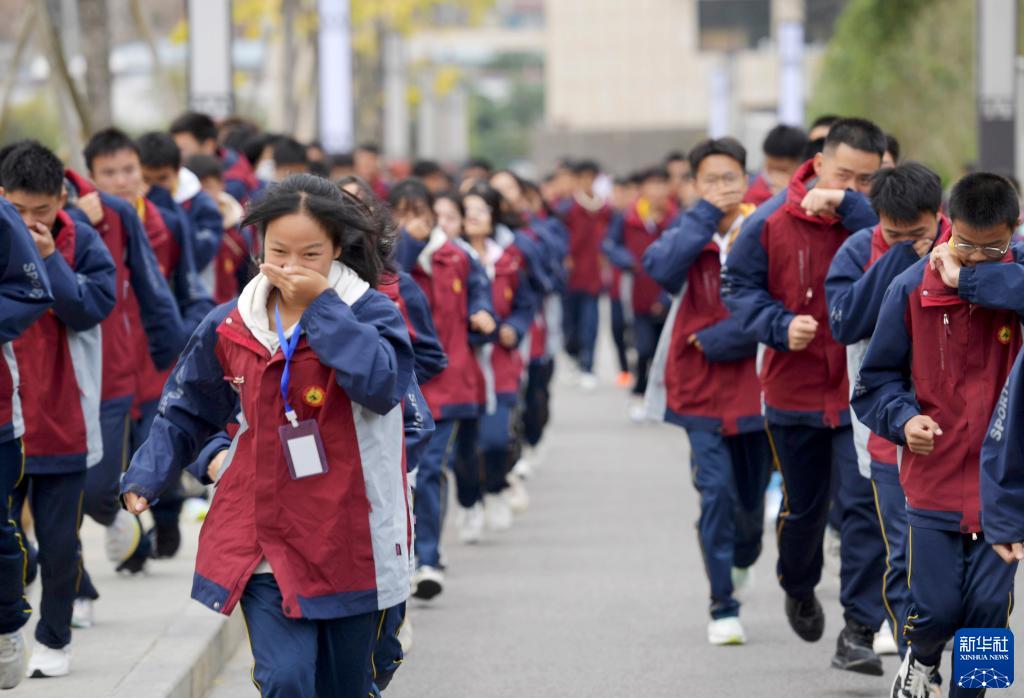 11月9日,黃平民族中學(xué)的學(xué)生在參加緊急避險疏散演練。