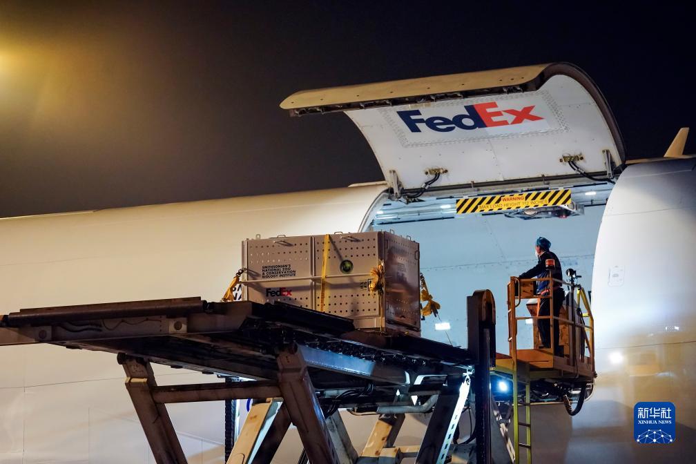 11月9日晚,旅美大熊貓抵達成都雙流國際機場(chǎng)。