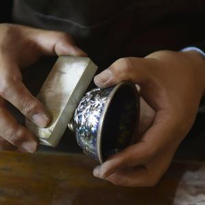 河南省郟縣金鑲玉制作技藝是國家級非物質(zhì)文化遺產(chǎn)代表性項目,歷史悠久,獨具文化內涵和藝術(shù)價(jià)值。據介紹,金鑲玉制作技藝原為對有瑕疵或破損的玉石、茶具等器物,用銅、錫等金屬絲片進(jìn)行掩飾、修補的鑲嵌工藝,后來(lái)逐步發(fā)展成為在陶瓷、紫砂等器物表面鑲嵌不同金屬(或合金)圖紋裝飾的獨特工藝。