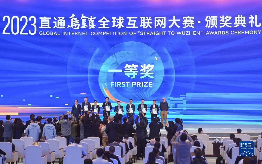 11月10日,獲得2023“直通烏鎮”全球互聯(lián)網(wǎng)大賽一等獎的代表在頒獎典禮上。