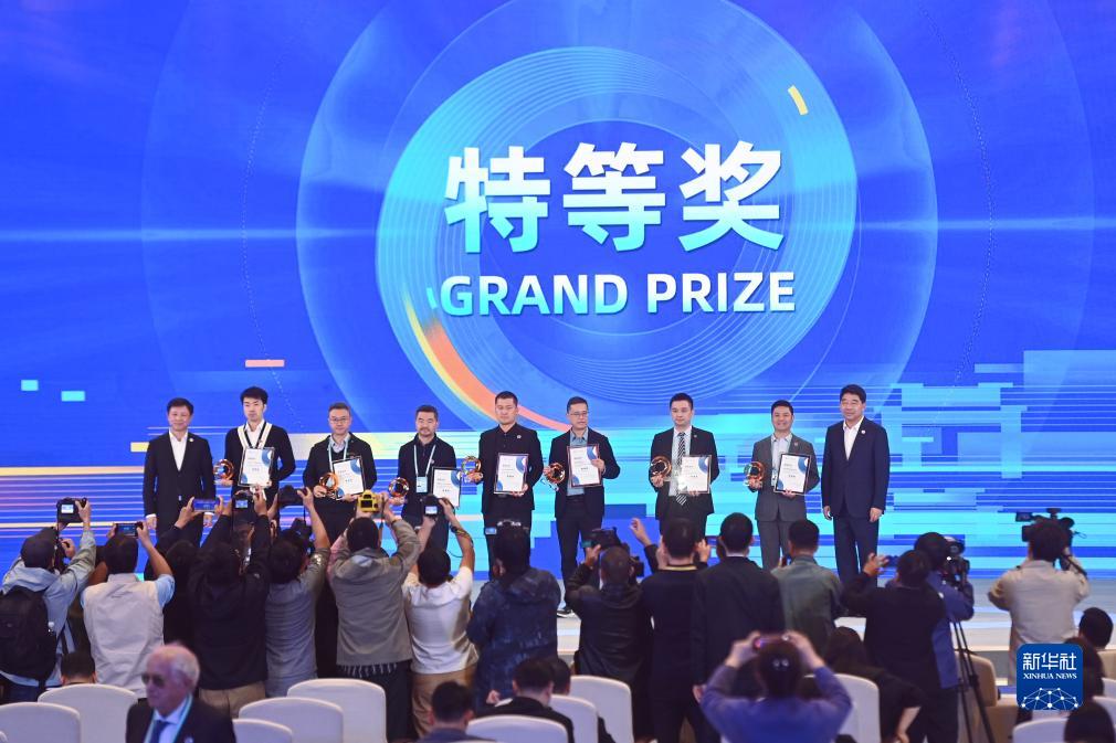 11月10日,獲得2023“直通烏鎮”全球互聯(lián)網(wǎng)大賽特等獎的代表在頒獎典禮上。