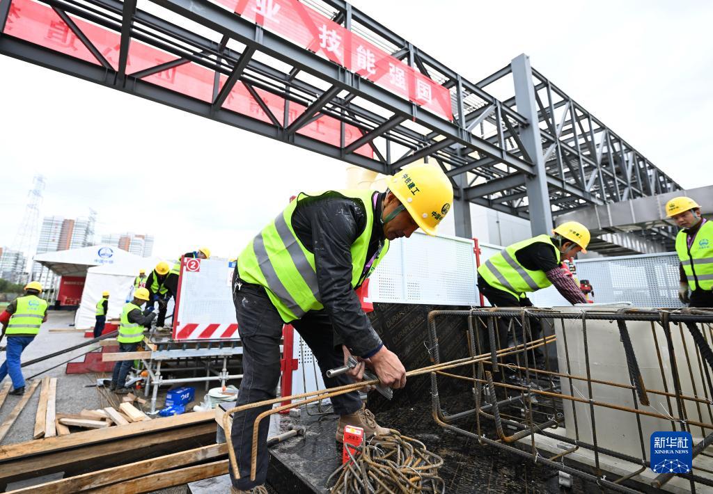 當日,中鐵建工集團南京大尺寸硅外延材料產(chǎn)業(yè)化項目現場(chǎng)舉行華夫板安裝職業(yè)技能競賽,36名工人比拼技能,一展身手。