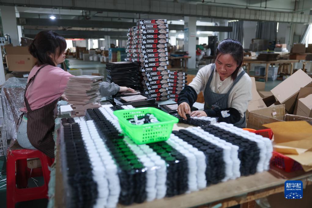 11月10日,在浙江金馬工藝品有限公司的車(chē)間內,工作人員在生產(chǎn)老年益智木玩產(chǎn)品。