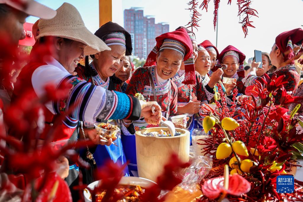 11月10日,游客在丘北辣椒節上品嘗美食。