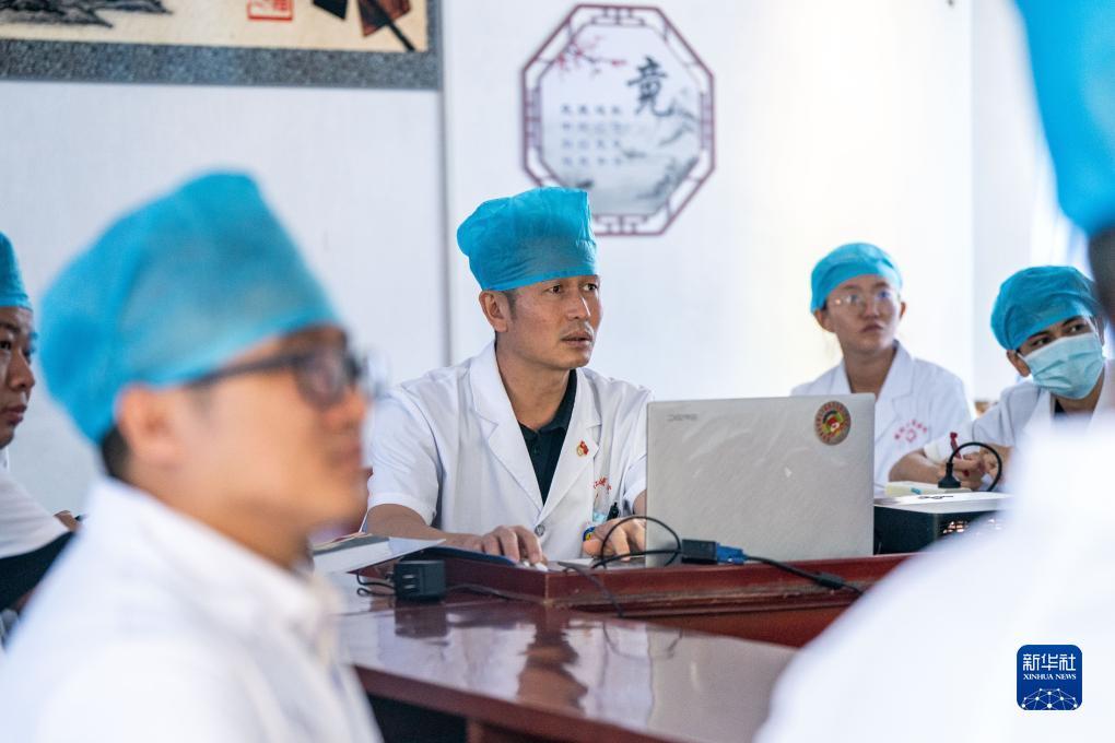 在畹町仁慈醫院,醫務(wù)人員在探討治療方案(10月29日攝)。