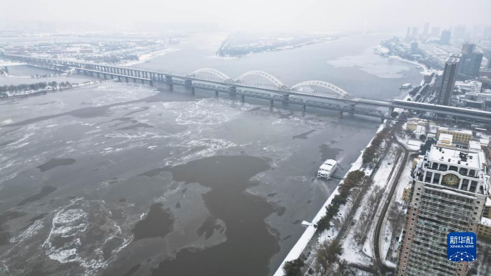 近日,隨著(zhù)氣溫下降,松花江哈爾濱段江面結冰速度加快。