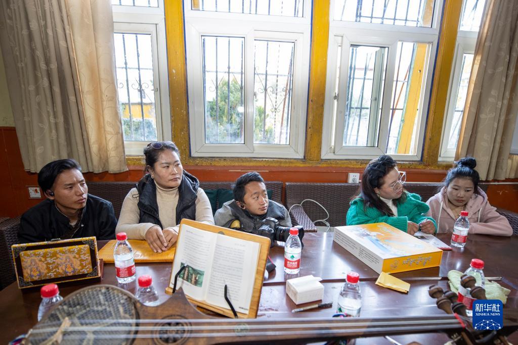 西藏拓崗文化傳播有限公司的直播團隊在討論直播方案(11月10日攝)。