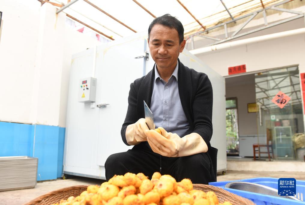 11月8日,貴州龍里縣谷腳鎮茶香村刺梨種植大戶(hù)燕啟富給刺梨切片。