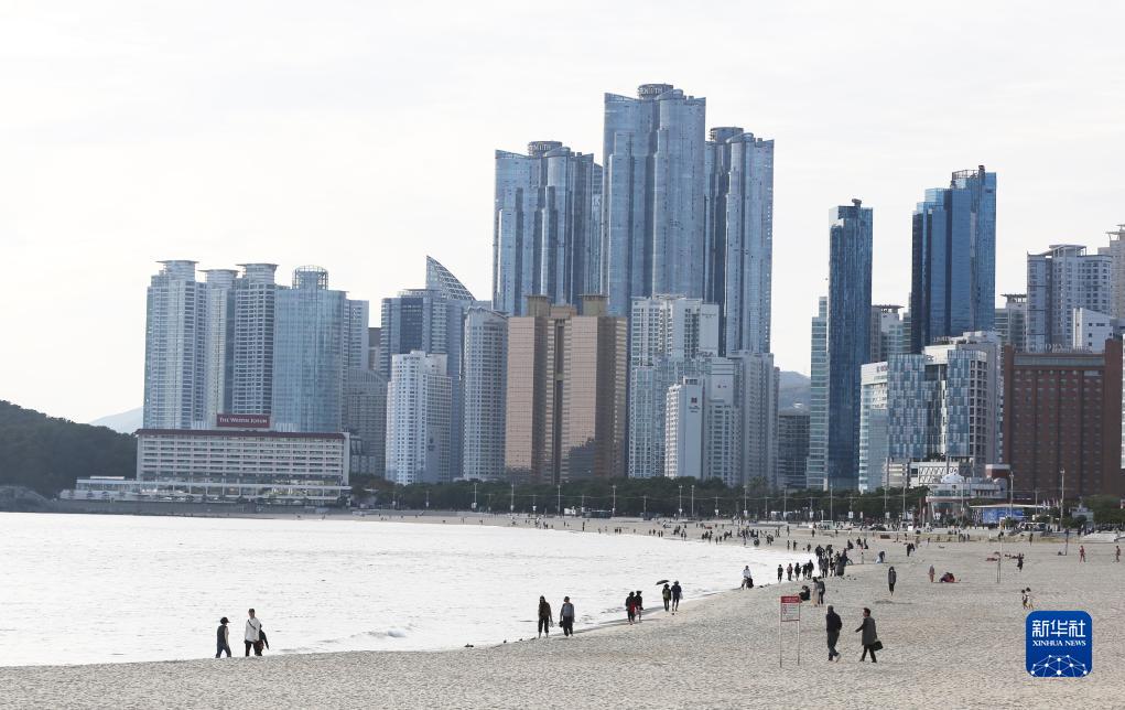 11月10日,人們在韓國釜山市海云臺的海灘休閑。