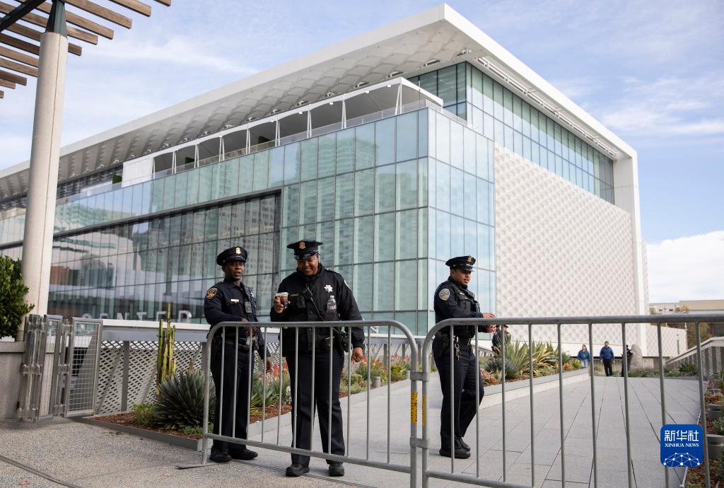 11月10日,警察在美國舊金山亞太經(jīng)合組織會(huì )議場(chǎng)地外執勤。