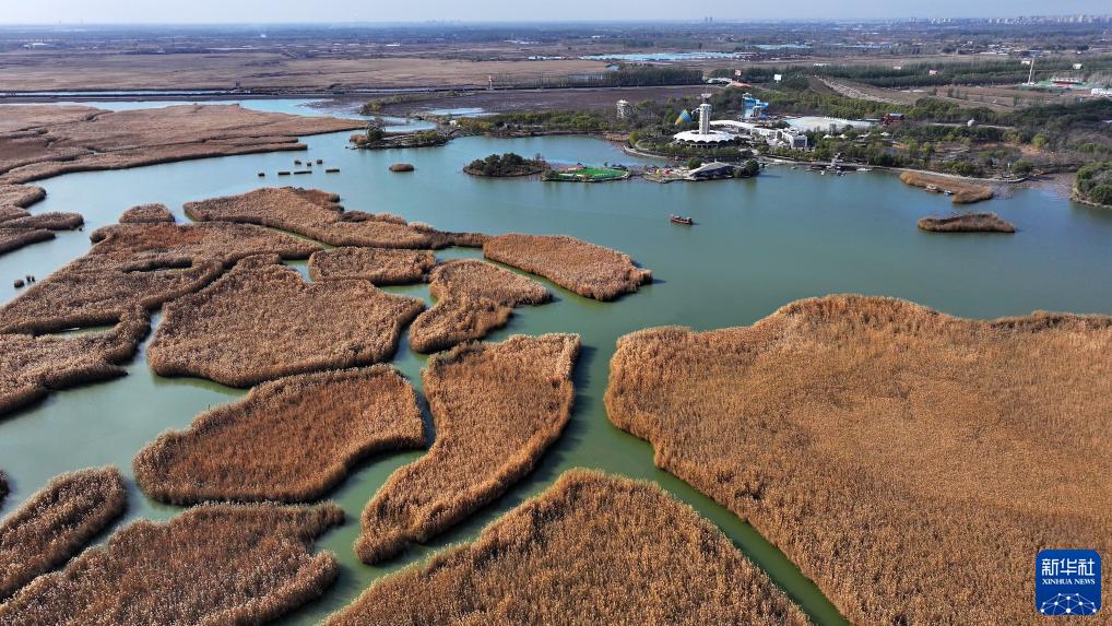 立冬節氣過(guò)后,位于寧夏銀川市興慶區的鳴翠湖國家濕地公園,金黃色的蘆葦隨風(fēng)飄蕩,各色林木五彩斑斕,構成獨特的初冬濕地景觀(guān)。