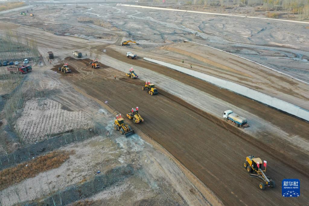 這是11月8日拍攝的G315線(xiàn)托帕至吐?tīng)栨靥乜诎豆方ㄔO項目施工現場(chǎng),項目建成后將提高口岸通關(guān)運輸效率(無(wú)人機照片)。
