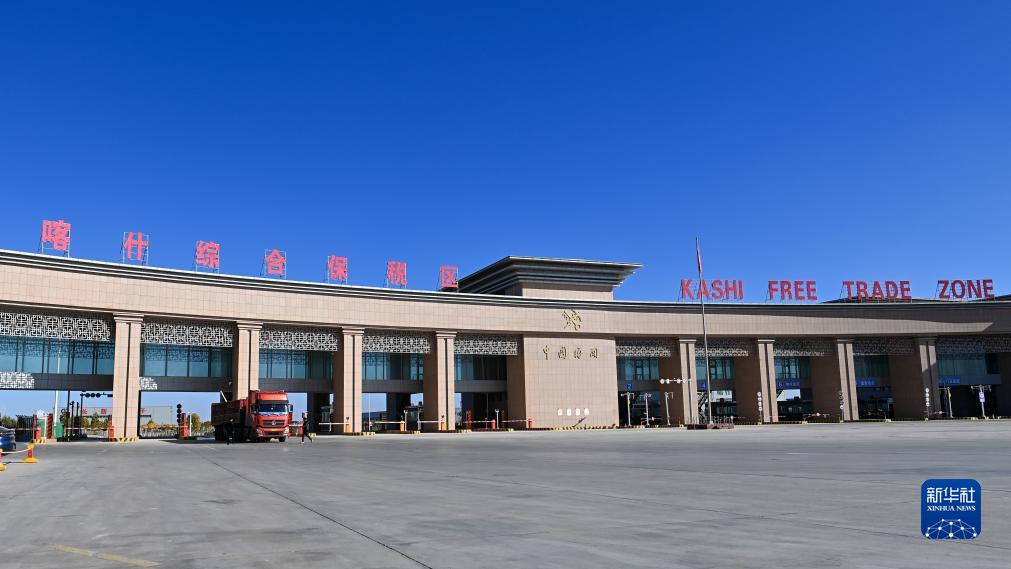 一輛貨車(chē)從新疆喀什綜合保稅區駛出(11月4日攝)。