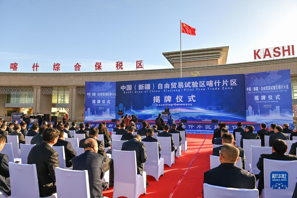 這是11月11日拍攝的中國(新疆)自由貿易試驗區喀什片區揭牌儀式現場(chǎng)。