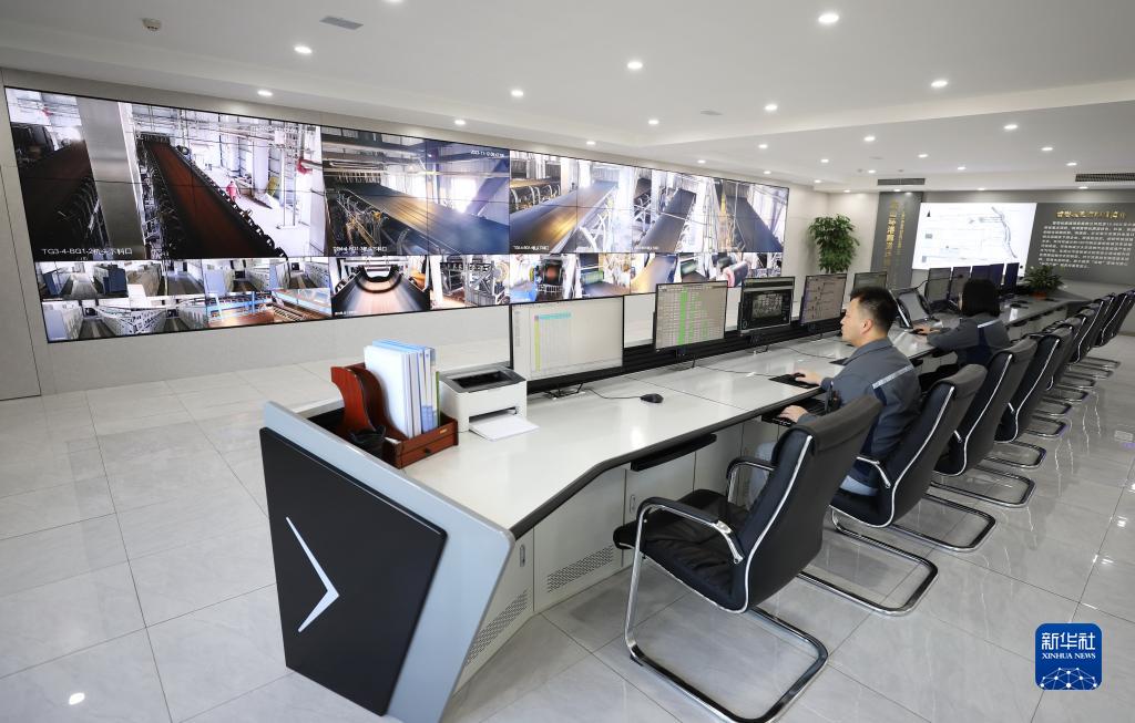 11月12日,工人在唐山海港經(jīng)濟開(kāi)發(fā)區管帶機廊道項目中央控制室工作。