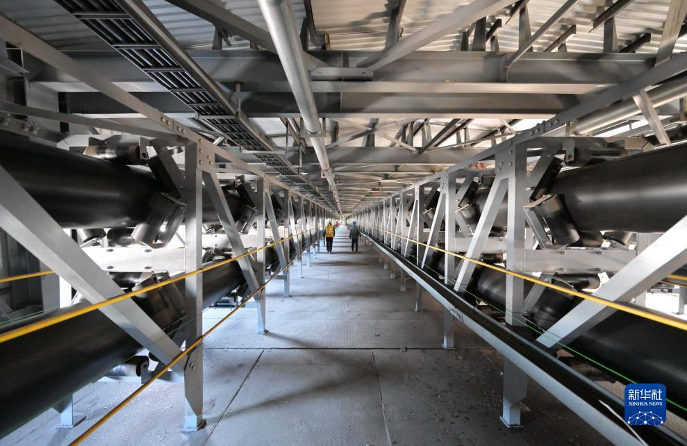 11月12日,工人在唐山海港經(jīng)濟開(kāi)發(fā)區管帶機廊道內巡檢。