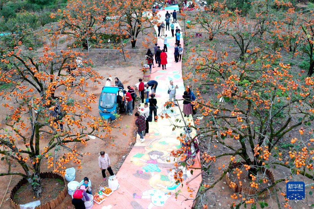 初冬時(shí)節,福建省寧德市古田縣利洋村柿子園的枝頭掛滿(mǎn)了橘紅的柿子,給這個(gè)小山村增添了亮麗的色彩,吸引游客前來(lái)游玩。