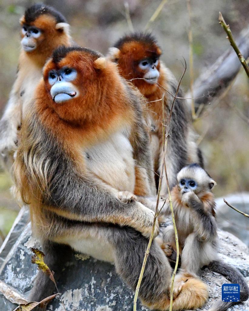 11月11日在四川白河國家級自然保護區拍攝的野生川金絲猴。