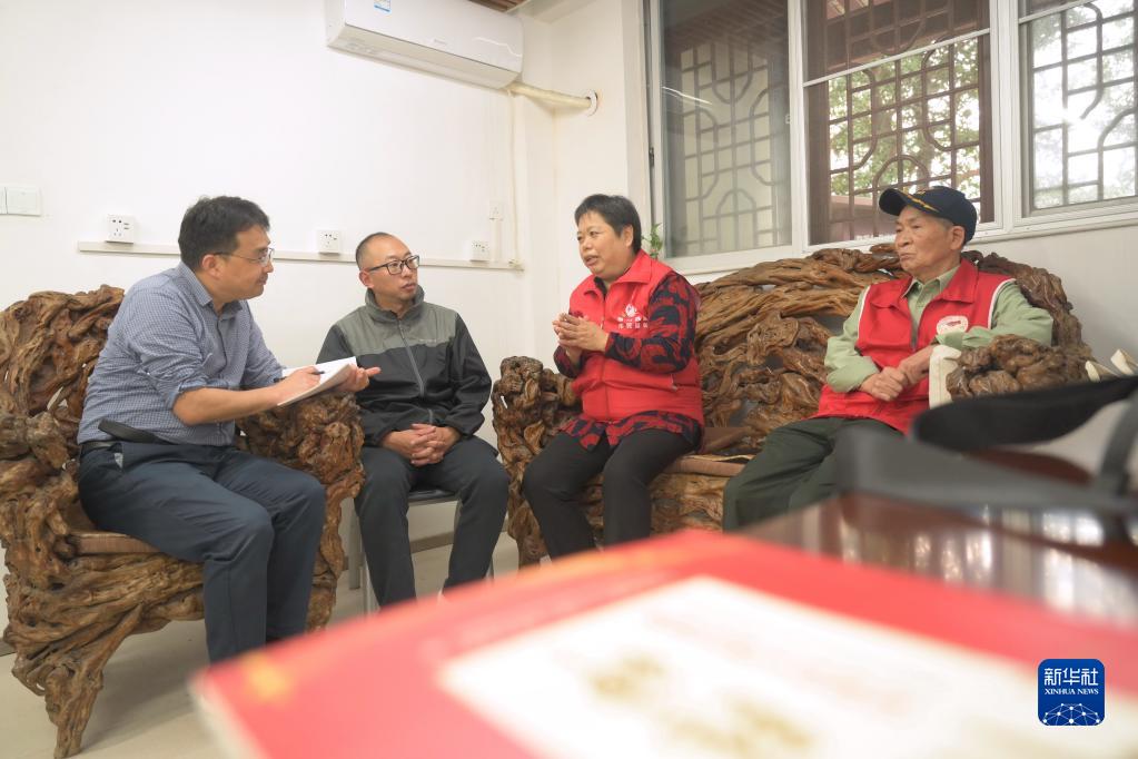 11月12日,福州市園林中心、西湖公園管理處管理人員在福州西湖公園向“市民園長(cháng)”陳素芬(右二)了解群眾對西湖公園的意見(jiàn)和建議。