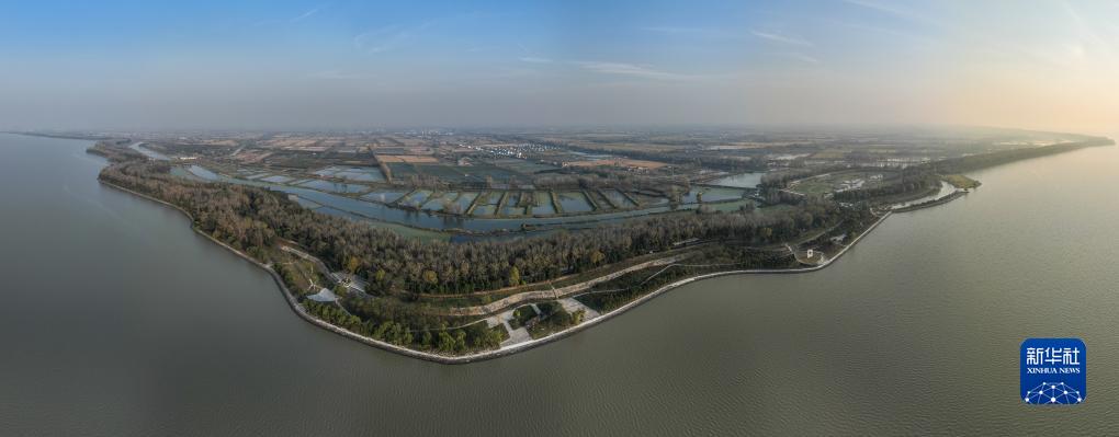 洪澤湖大堤初冬景色(11月8日攝,無(wú)人機照片)。