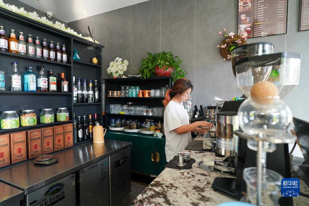 在樹(shù)山村一處民宿,工作人員在制作咖啡(11月2日攝)。