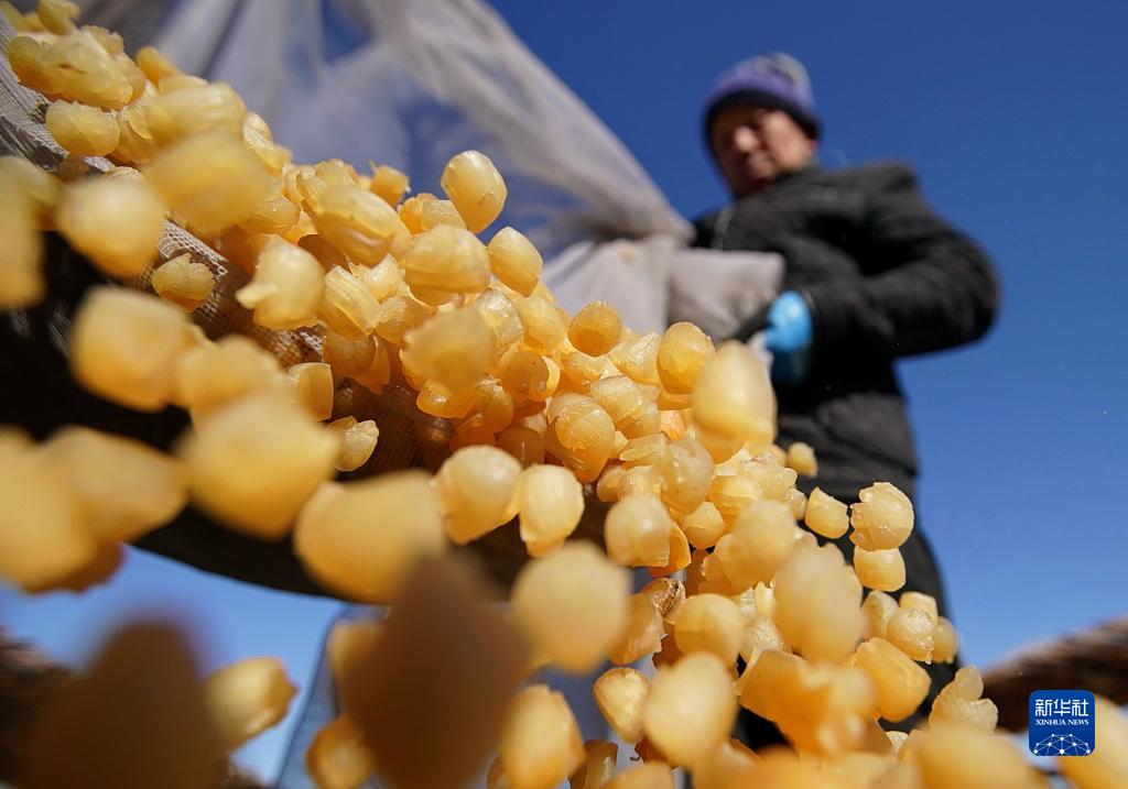11月13日,秦皇島市昌黎縣團林鄉的扇貝養殖戶(hù)在將晾曬好的扇貝柱裝箱。