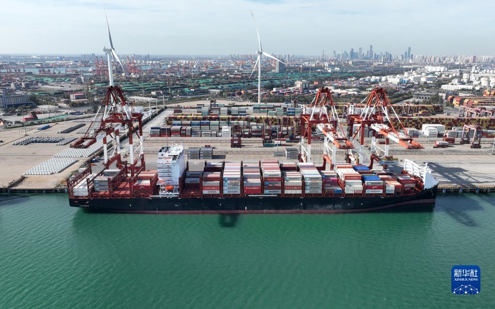 集裝箱貨輪??吭谔旖蚋蹥W亞國際集裝箱碼頭(11月13日攝,無(wú)人機照片)。