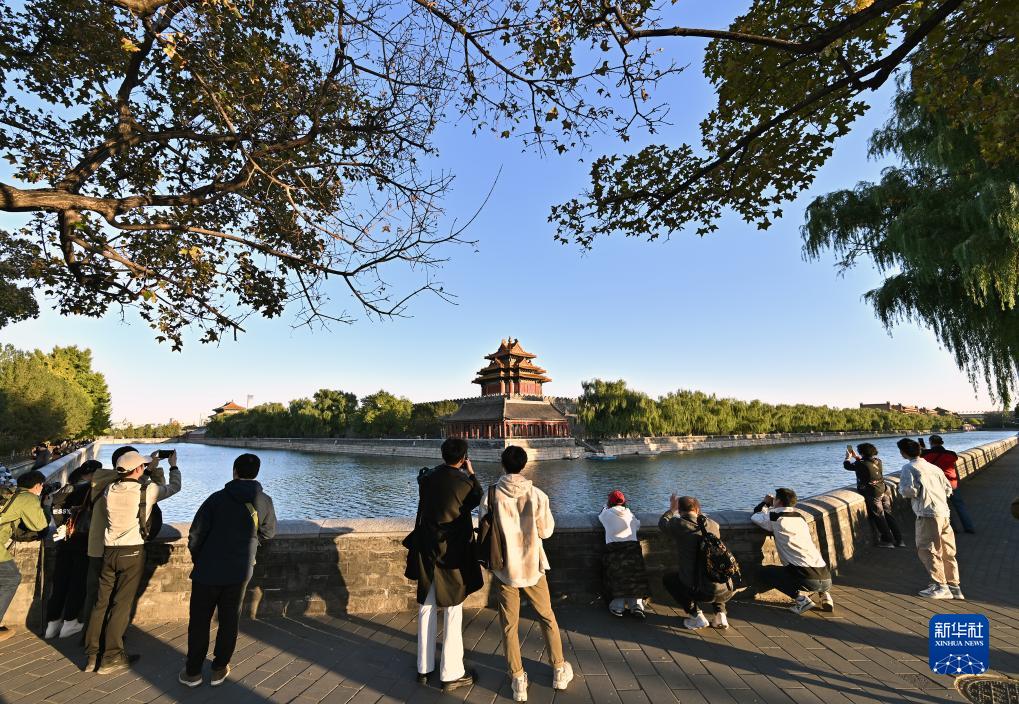 秋日北京,天高云淡。北京中軸線(xiàn)上的古老的文物建筑與色彩斑斕的秋葉相互映襯,美不勝收。