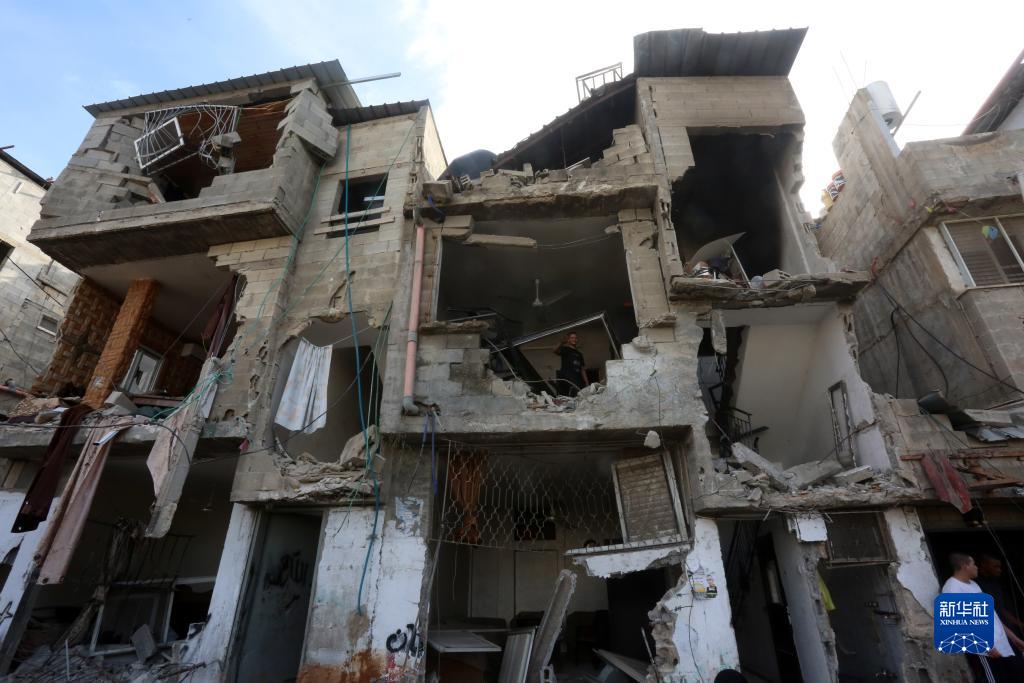 11月14日,人們在約旦河西岸城市圖勒凱爾姆查看廢墟殘骸。