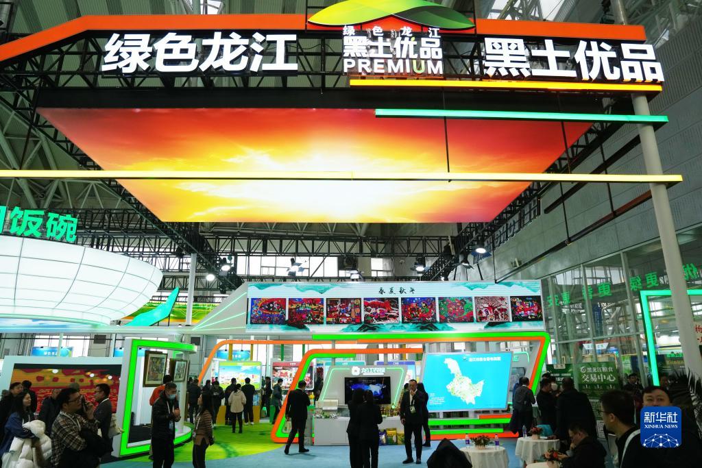 11月15日,在首屆中國(黑龍江)國際綠色食品和全國大豆產(chǎn)業(yè)博覽會(huì )的綠色龍江黑土優(yōu)品展區,參會(huì )者在觀(guān)展。