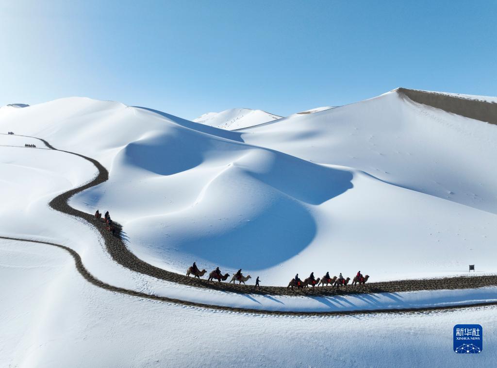 11月14日晚,甘肅省敦煌市迎來(lái)入冬以來(lái)的首場(chǎng)降雪。雪后的鳴沙山月牙泉景區銀裝素裹,景色如畫(huà),美不勝收。
