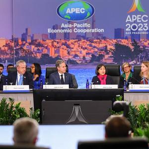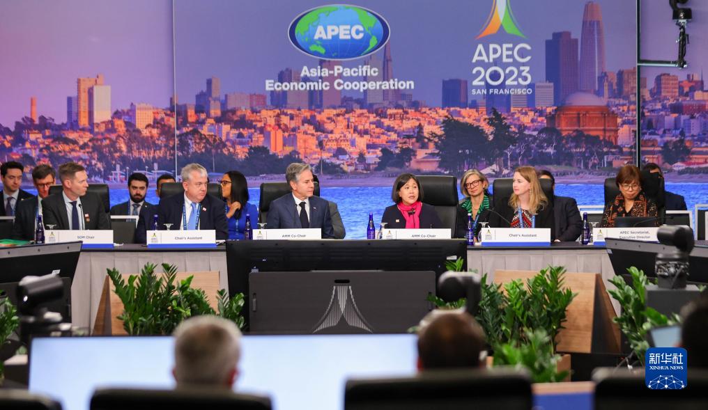 11月14日,美國國務(wù)卿布林肯(中左)和貿易代表戴琪(中右)共同主持在舊金山舉行的亞太經(jīng)合組織部長(cháng)級會(huì )議。