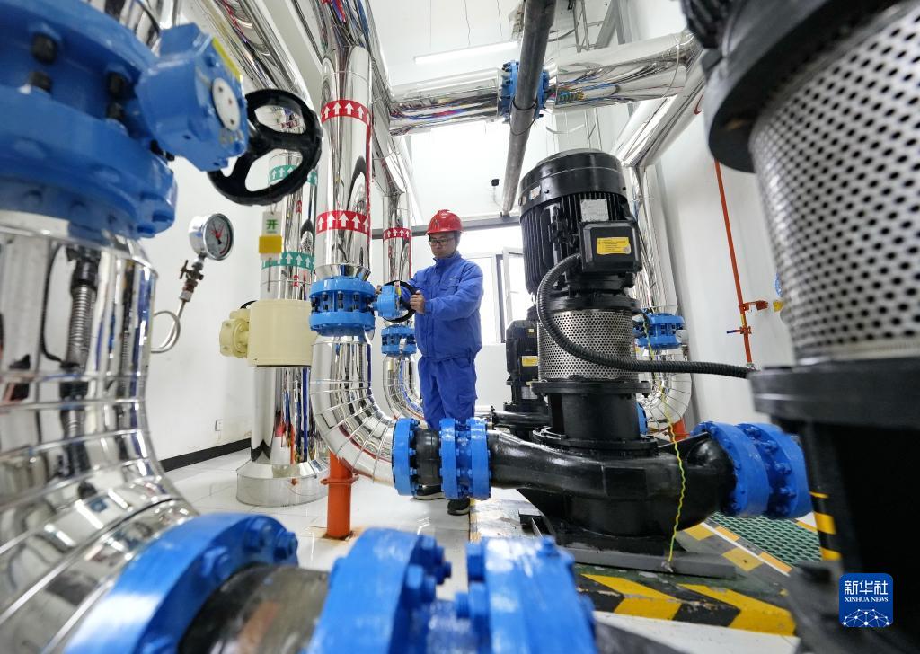 11月15日,唐山港能投智慧能源有限公司工作人員在唐山市路南區一處供熱站內檢查供暖設備。
