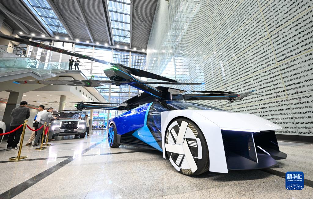 11月15日,在第二十五屆高交會(huì )上,機臂、旋翼等飛行系統可以完全折疊收納的小鵬匯天陸空一體式飛行汽車(chē)對公眾展出。