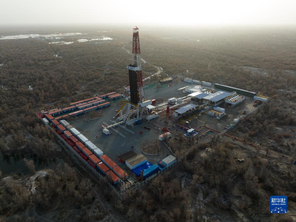 11月15日拍攝的中國石化“深地一號”躍進(jìn)3-3XC井(無(wú)人機照片)。