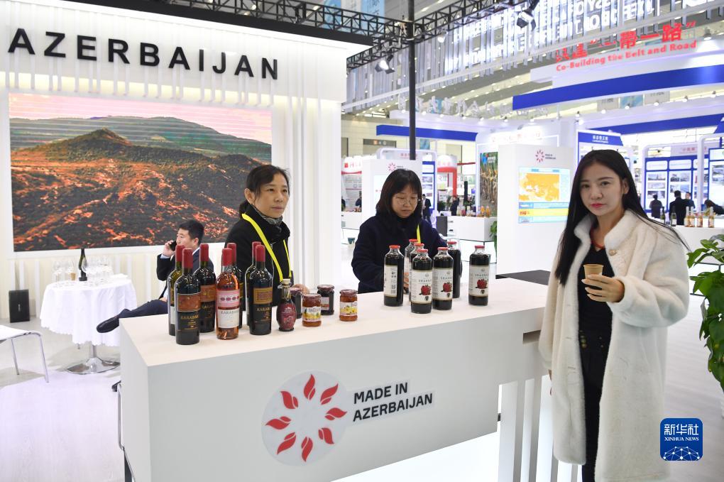 11月16日,觀(guān)眾在第七屆絲博會(huì )上品嘗阿塞拜疆展位上的飲料產(chǎn)品。