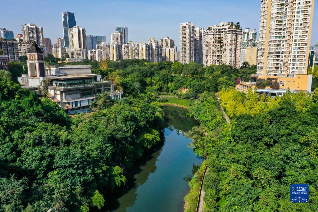 這是11月16日在重慶市渝北區龍山街道龍華社區拍攝的盤(pán)溪河及其周邊景象(無(wú)人機照片)。