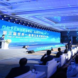這是11月16日拍攝的第三屆世界一流港口多式聯(lián)運大會(huì )現場(chǎng)。