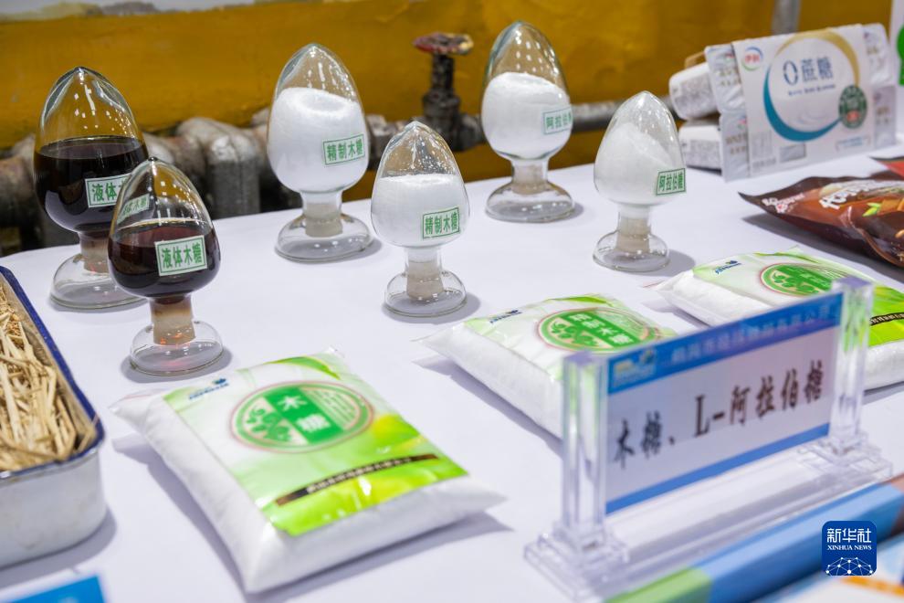 這是11月14日在鶴崗市經(jīng)緯糖醇有限公司拍攝的木糖等產(chǎn)品。該公司以農業(yè)廢棄物玉米芯為原料生產(chǎn)木糖,年消耗玉米芯10余萬(wàn)噸。