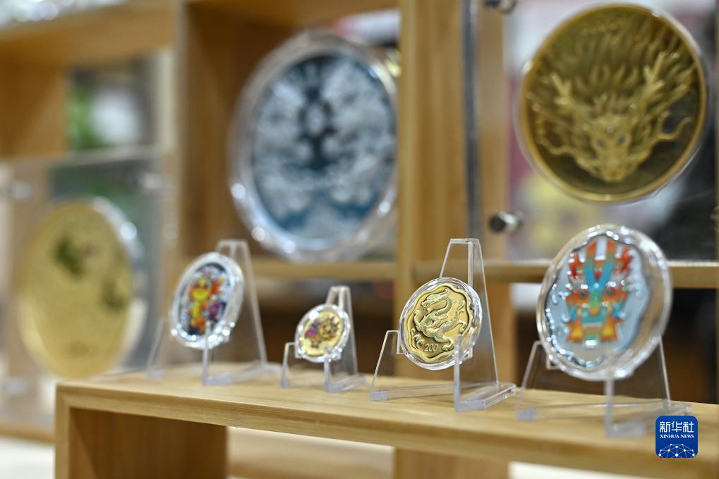 這是11月17日拍攝的活動(dòng)現場(chǎng)擺放的2024中國甲辰(龍)年貴金屬紀念幣。