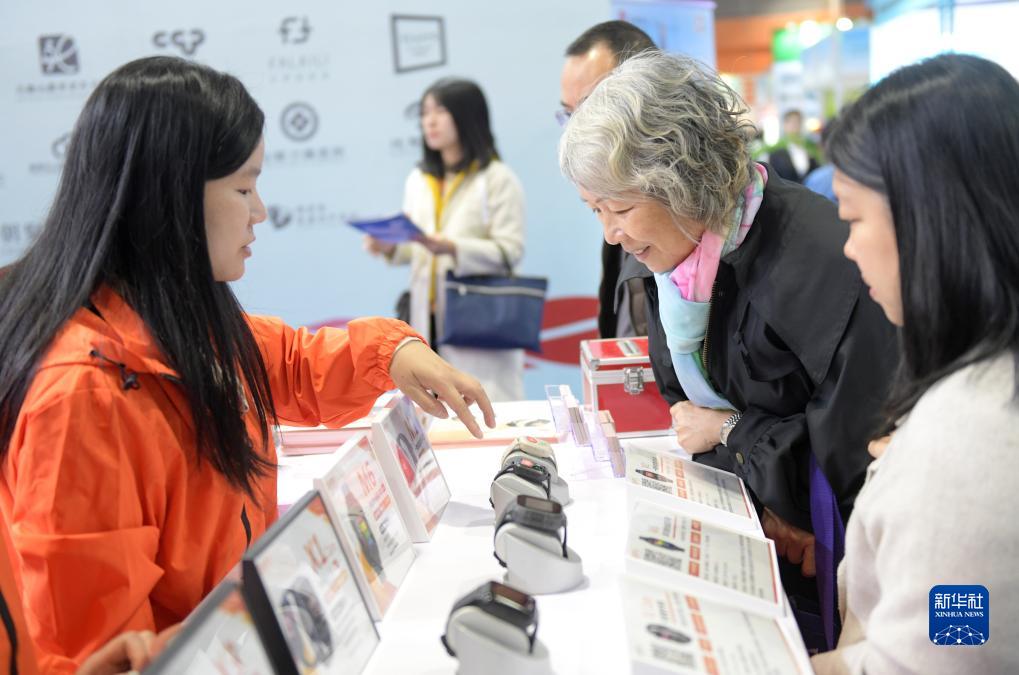 11月17日,一名老年人在展會(huì )上參觀(guān)選購一款監護手表。